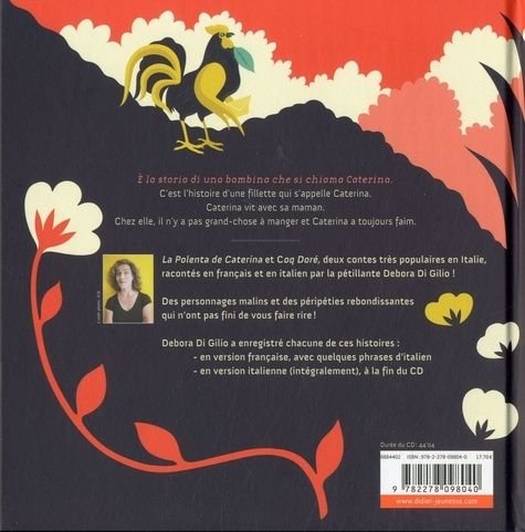 Debora Di Gilio a choisi deux contes parmi les plus connus : Coq doré et La Polenta de Caterina, la version vénitienne du Petit Chaperon rouge.
